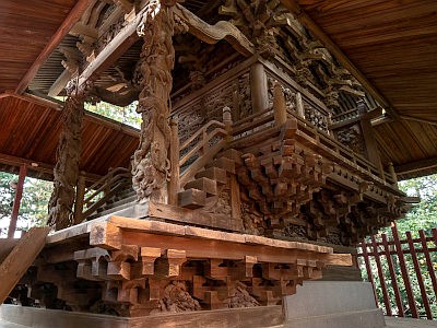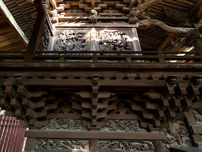 壁面全面を彫刻で飾られた、比較的大型の本殿が鎮座する。
