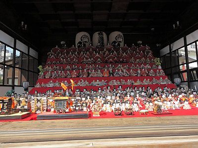 2月下旬から4月上旬にかけて、境内には複数の雛壇が設けられ、雛人形が多数展示される。この行事に関する詳細は「素盞雄神社 桃まつり」の記事を参照。