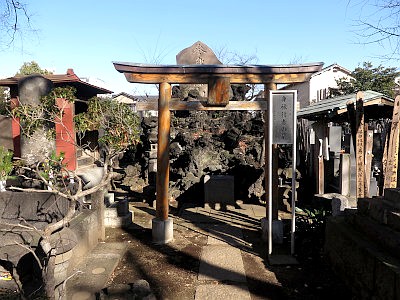 江戸時代の富士講の伝説的行者である食行身禄の、富士塚風の墓がある。
