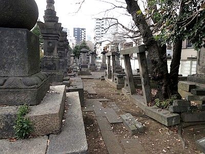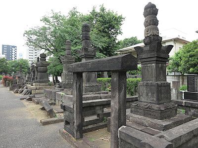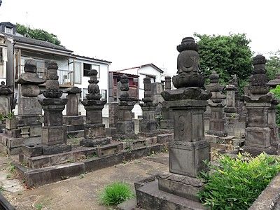 名刹だけあって大名家の墓所も多いが、新潟の新発田藩主溝口家や茨城の麻生藩主新庄家などの墓所以外は縮小整理されている。