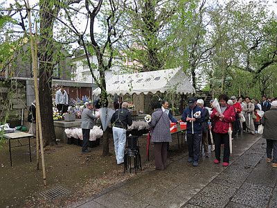 なお、花供養とその後の花の配布は、世田谷区の九品仏浄真寺でも5月中旬頃に行われている。