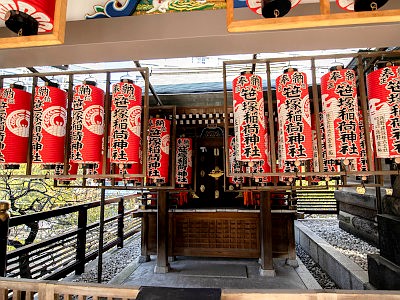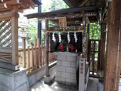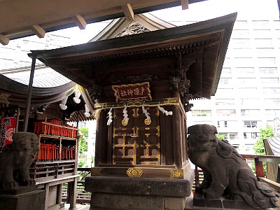 天三火伏稲荷神社は、かつては備中庭瀬藩主板倉邸の鬼門除けの稲荷であった。覆屋の屋根を支える支柱に鳥居を組み込んである。