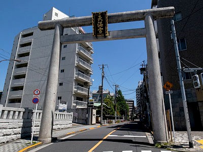 銅鳥居は江戸前期の1667年建立。東京都指定有形文化財。