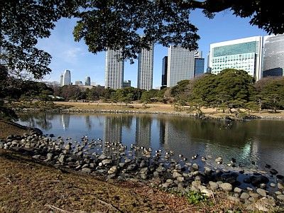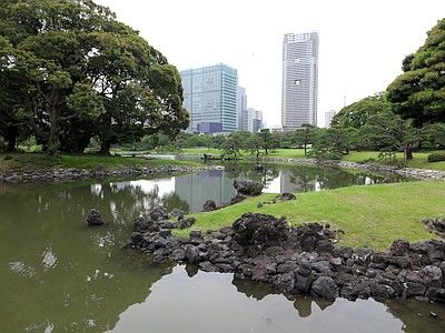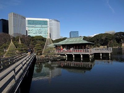 浜離宮恩賜庭園は、東京都中央区の、都営大江戸線の汐留駅より徒歩7分の地にある、国の特別名勝かつ特別史跡の回遊式潮入庭園(潮の干満による景観の変化を楽しむ庭園)。