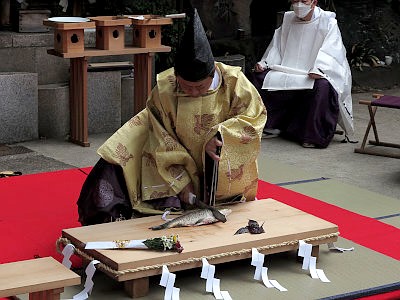 10月に催される秋季大祭「御初穂祭」では、四條流包丁式が奉納される。