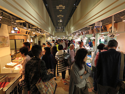 「築地魚河岸」は、築地市場移転後の賑わい維持を見据えて場外市場に設けられた、小売店が入居する区営の生鮮市場。