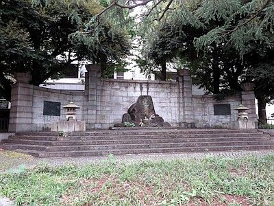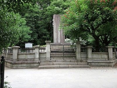 贈右大臣大久保公哀悼碑は明治17年建立。石碑自体は割りと普通だが、周りの石柵は重厚。