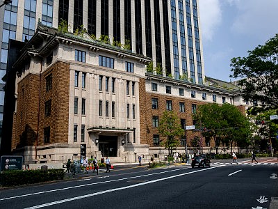令和4年開業の九段会館テラスの低層部には、旧九段会館の外壁の北面と東面を保存。