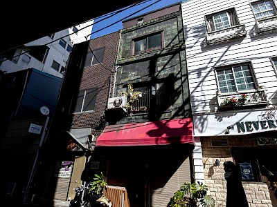 松岡九段ビルは昭和4年竣工。旧松葉館。外壁は新材で覆われている。