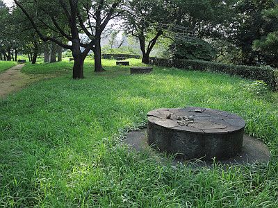 千鳥ヶ淵を望む南側の高台に、高射砲台座跡が7基残る。
