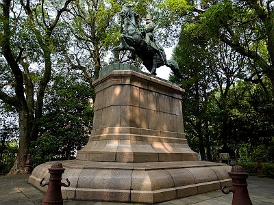 大山巌像は大正8年に参謀本部前に設置されたが昭和23年撤去され、昭和44年に現在地に移設。