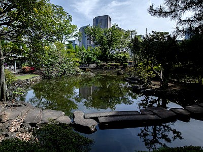 国会前庭の南地区は和風庭園として整備されている。江戸時代は福岡藩主黒田家の上屋敷(の一部)であった。明治期には有栖川宮邸を経て明治29年に霞関離宮となるが第二次大戦で戦災焼失し、戦後に国会前庭として一般公開された。