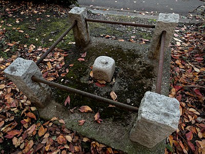 水準原点掩蓋(水準原点を保護する覆屋)は国指定重要文化財。明治24年建造で石造(一部は煉瓦造)。