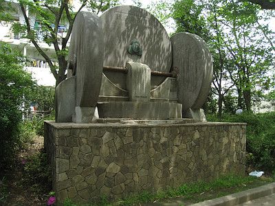 加賀西公園内には、二造で使用された圧磨機圧輪がモニュメントとなっている。