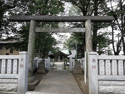 表鳥居は、額束が丸い石造神明鳥居。額束が丸い鳥居は、全国的にも非常に珍しい(ただし東京には、江戸川区の葛西仲町八雲神社にも1基ある)。