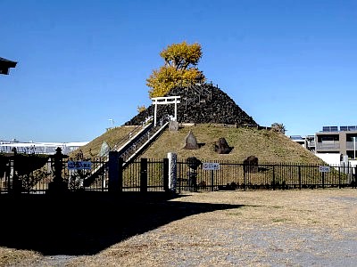 富士塚(飯塚富士)は平成29年移設(旧地より北東に12m移動)。
