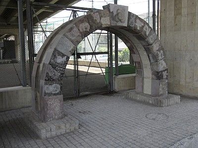 造兵廠電気鉄道のトンネルの石アーチが、モニュメントとしてちんちん山児童遊園内に残る。