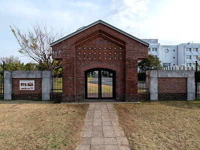 十条富士見中学校に保存されている煉瓦塀は、旧陸軍東京砲兵工廠銃包製造所の遺構。