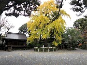 拝殿前の桜は、北側(左側)が御衣黄、南側(右側)が福禄寿。