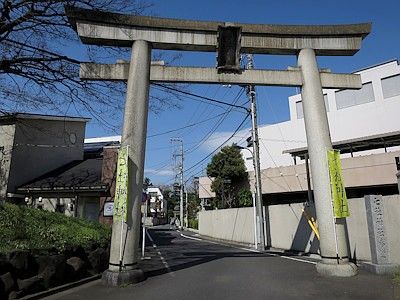 江戸期は一本杉神明宮などと呼ばれたが、この名称の由来となった杉の切り株が背後に残る。
