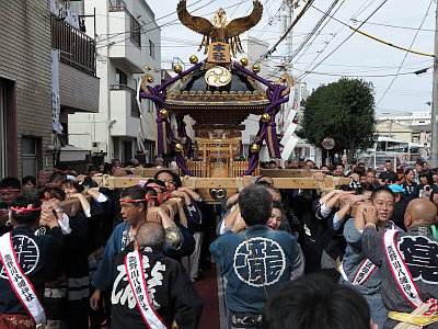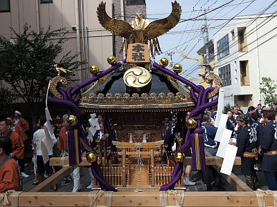 氏子町会には4基の八棟造の町神輿がある。八棟造の神輿はまあまあ珍しい。