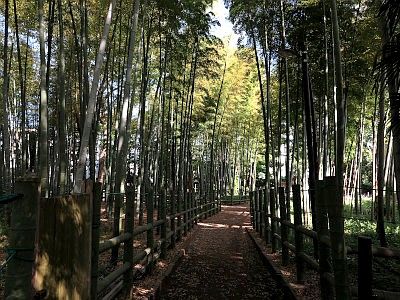 竹林の奥にある旧栗山家住宅主屋は目黒区指定有形文化財で、江戸中期の建造。栗山家は名主であった。