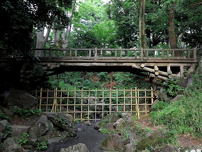 開園当初から残る擬木橋は、滝の前に架かる猿橋のみ。