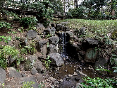 現在、園内には日本庭園があるほか、昭和9年の公園開園当時の太鼓橋や擬木橋が残る。東京都立中央図書館も置かれている。