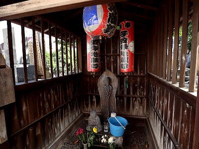 通称は幽霊地蔵。赤子を連れた女の幽霊が毎晩飴屋で飴を買った後、この地蔵の元へ向かったので、地蔵を供養すると現れなくなった、という伝説が残されている。