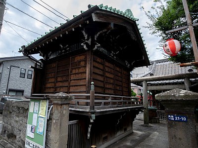 社頭にある神楽殿は昭和初期の築。比較的珍しいむくり屋根の神楽殿。