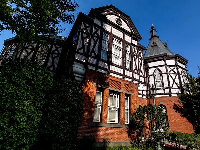 記念館は港区指定有形文化財。明治23年竣工。旧神学部兼図書館。