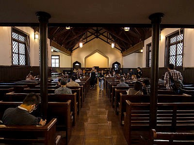礼拝堂は港区指定有形文化財。大正5年竣工で、設計はヴォーリズ。