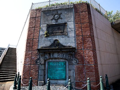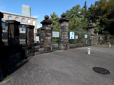 東京都水道局の芝給水所の正門は、明治31年に建造された門を旧淀橋浄水場より移築したもの。