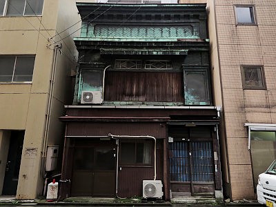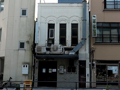 山陽堂書店は昭和6年竣工だが、昭和38年の道路拡幅で正面側が削られ1/3となった。