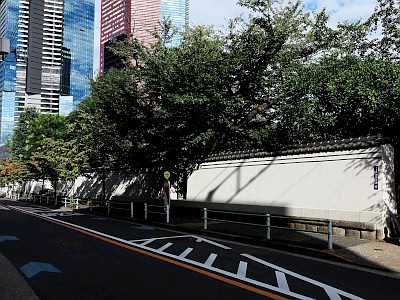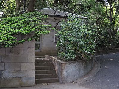 三菱開東閣は、三菱財閥総帥岩崎家の高輪別邸として明治期に建設され、現在は三菱グループの施設となっている。現在もコンドルが設計した洋館など、建物が幾つか現存するが、非公開。敷地内部の様子は木々に遮られてほとんど見えないが、旧正門の脇にある石造の供待のみ、門の外から若干覗うことができる。