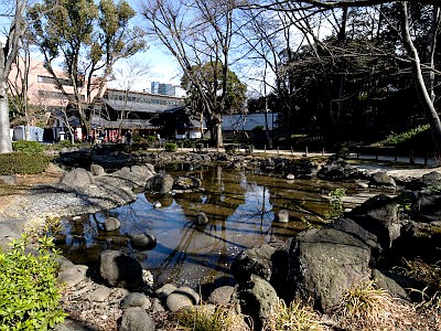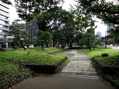 増上寺の東側の芝公園には、江戸時代の番所跡と伝える土塁に挟まれた鍵曲りの通路の遺構がある。