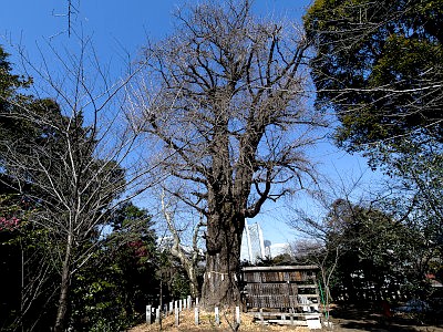 壮麗だった社殿は第二次世界大戦で焼失し、戦後に鉄筋コンクリートで再建され、当時のもので残るのは鳥居などのみ。また1641年に徳川家光が手植えしたと伝えるイチョウが東京都指定天然記念物となっている。
