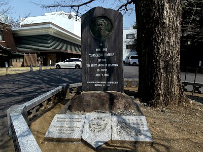 この碑は、駐日公使タウンゼント・ハリスが、安政6年(1859年)から明治8年(1875年)まで当寺に初代アメリカ公使宿館を置いたことを記念し、日米協会が昭和11年建立。