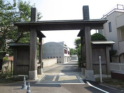 北側の目黒通り(都道)から延びる北参道に立つ現在の通用門は、前代の通用門が表参道の山門として移築された後、新築された。