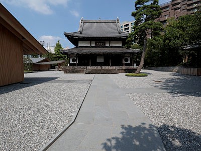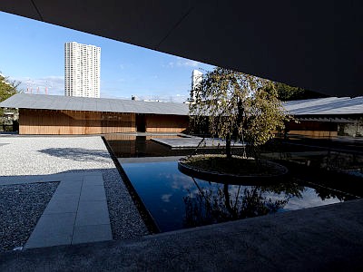 水庭を囲む庫裏及び寺務所は平成30年竣工。設計は隈研吾。