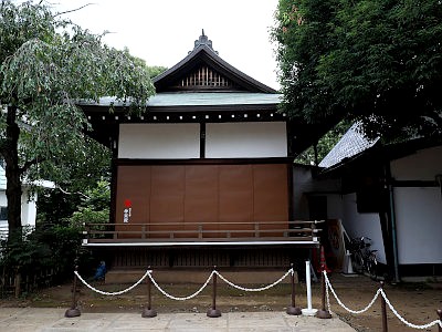 本殿は旧小笠原子爵邸の邸内社(明治初期の建立)を移築したもの(ただし小笠原子爵家には複数あり、出典元の『地域展示 中野の神社をたずねて』にはどの小笠原子爵家かについての明示がない)。