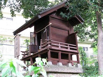 社殿は昭和8年建立。拝殿にムクリ屋根の破風が乗っているのが珍しい。東京では他に、品川区の寄木神社の拝殿や、港区の旧台徳院霊廟惣門と3件もあるが、全国的にかなり珍しいと思われる。