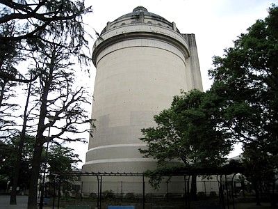 野方配水搭は昭和4年竣工。旧荒玉水道町村組合野方給水場配水塔。国登録有形文化財。