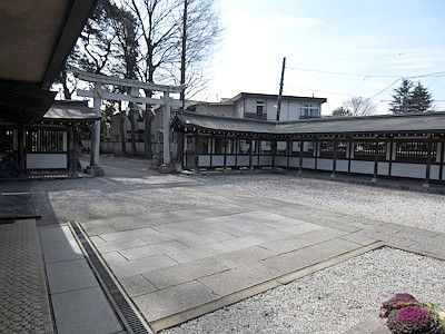 社殿は、比較的小規模で戦後のものながら、木造の廻廊に囲まれている。