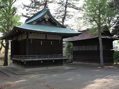 正面にあるのが氷川神社の拝殿(昭和3年築)、その右側にあるのが須賀神社。