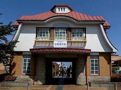 東急電鉄の現・田園調布駅の駅前に立つ旧田園調布駅舎は、大正12年に旧目黒蒲田電鉄調布駅として建てられた木造駅舎を、平成12年にRC造でレプリカ復元したもの。
