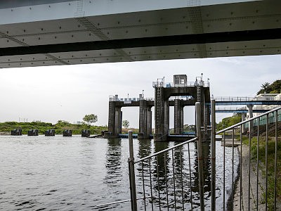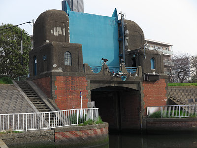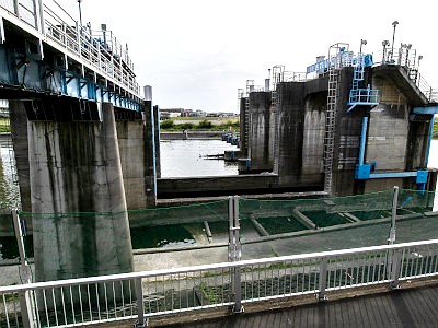 多摩川に面した六郷水門は昭和6年の、その脇の六郷排水場は昭和19年の竣工。
