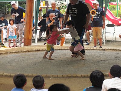 7月には土俵でこども相撲大会が開かれ、土俵祭が行われた後、幼児から小学生までの取組が行われる。