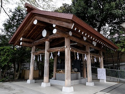 手水舎は戦後建築だが木造で、少し変則的な形状。