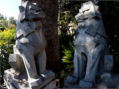 なお、現在の社殿は戦前とは異なるが、構成はある程度踏襲している模様。平地からは確認できないが、グーグル・マップ上の航空写真で確認できる。